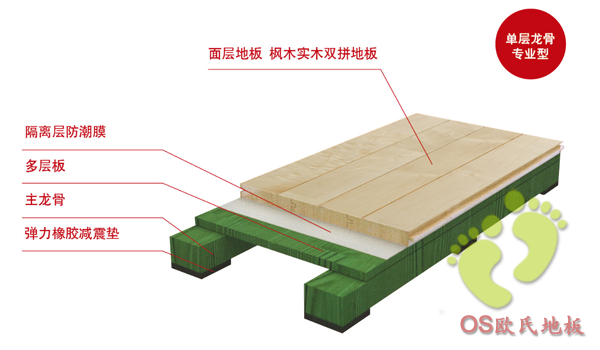 體育運動木地板—單層龍骨專業型結構是我廠為迎合**體育地板行業的發展趨勢及時研發的專業運動木地板系統,它不但堅固耐用而且彈性十足,可完全滿足運動員對體育運動、籃球、羽毛球、網球、排球、乒乓球、壁球、舞臺演出、舞蹈、健身等競技項目的訓練和比賽,體育運動木地板工程的設計在結構上除滿足體育競技和健身需求外,在選用材料上體現了自然環保,在設計上還體現自然、和諧、時尚。體育木地板是一種具有優良的承載性能,高吸震性能,抗變形性能的運動木地板,其表面的摩擦系數達到了0.4-0.6,因太滑或太澀都會對運動員造成傷害。震動吸收性能達到了≥53%可有效的避免運動員受到運動損傷,而作為籃球場的體育木地板,還具有90%以上的球體反彈能力,能有效滿足運動快節奏需求。