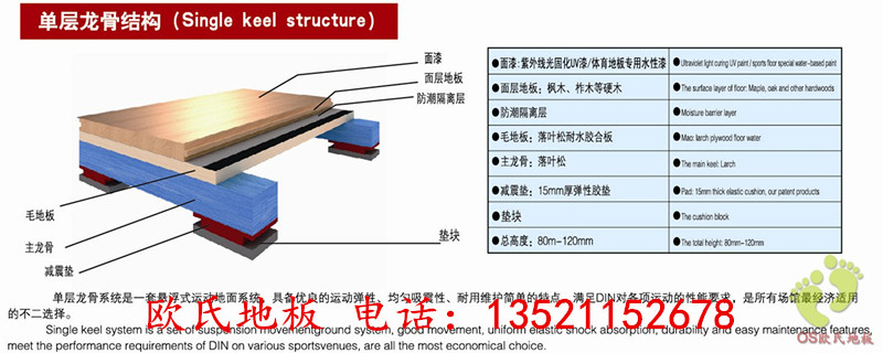 單龍骨體育木地板系統(tǒng)是由雙層木龍骨系統(tǒng)演變過來的系統(tǒng),符合德國DIN專業(yè)標準的體育運動木地板。即保持連續(xù)回彈性和高吸震性的固定懸浮式的體育木地板系統(tǒng),從而節(jié)約了成本。單層龍骨結(jié)構(gòu)是目前國內(nèi)各體育場館使用得*多的一套系統(tǒng), 經(jīng)過這么長時間的GALLOP單層龍骨系統(tǒng)得到用戶的一致贊譽。